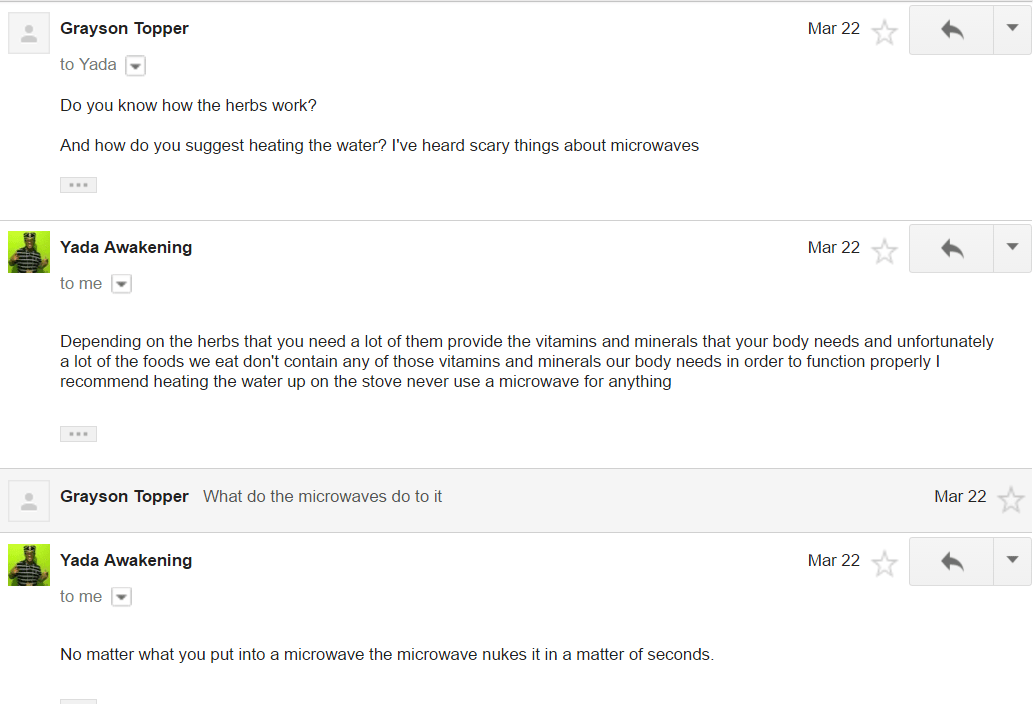 Still ignoring basic rules of grammar (a staple of any detox expert I imagine), I get the perfect response about microwaves. Thank you, YADA. I literally lol’d when I read your response.
